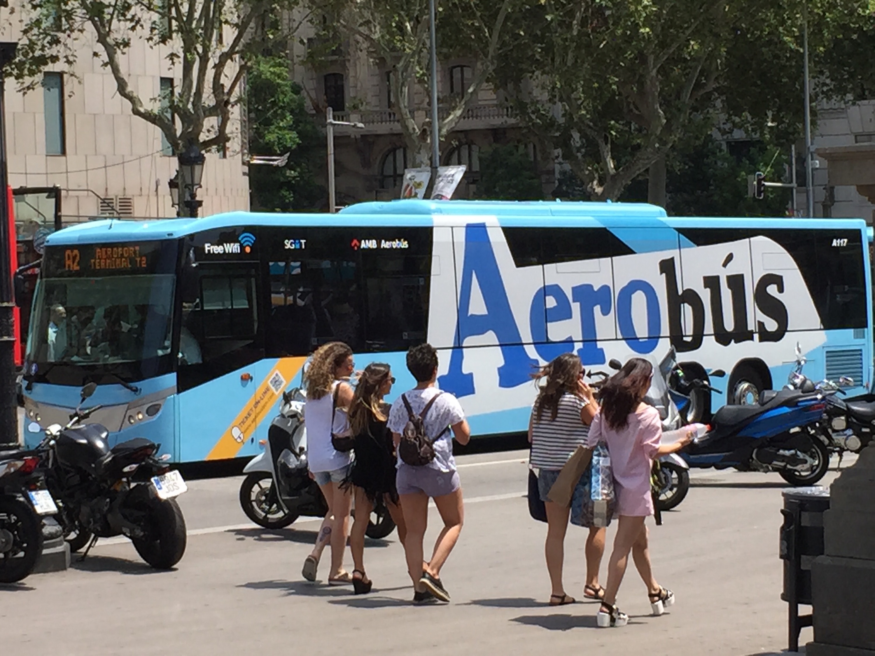 The entire trip took about 40 or so minutes with stops near major Metro lines. Free Wifi and guaranteed space to stow your luggage are also an added perks to riding the Aerobus. It is a kneeling bus, but you will still have to carry your own bags. If you have more bags than you can carry on your own this may not be an option for you. I found it to be quite enjoyable as it gave me an opportunity to people watch as we made our way to the tourist area of Barcelona.