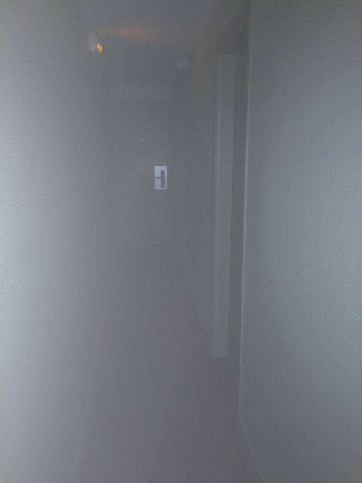 Ok, I thought they must be motion sensor activated. I took a few steps down the narrow hallway. Nope. Nothing. I fumbled in my bag and pulled out my iPhone and hit the icon for the flashlight. I found my room at the end of the hall.