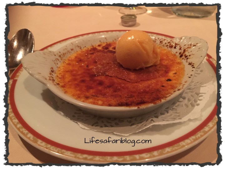 “But of course,” he said as he led me to a small table. A few seconds later he handed me a menu. Now this will be the real challenge. Remembering my formerly ailing stomach I hoped I didn’t accidentally order anything too rich or exotic. I opened the menu. It was in English! Thank God! A few seconds later the waiter set the Specials of the Day Chalkboard on the end of my table. It was all in French. I laughed.