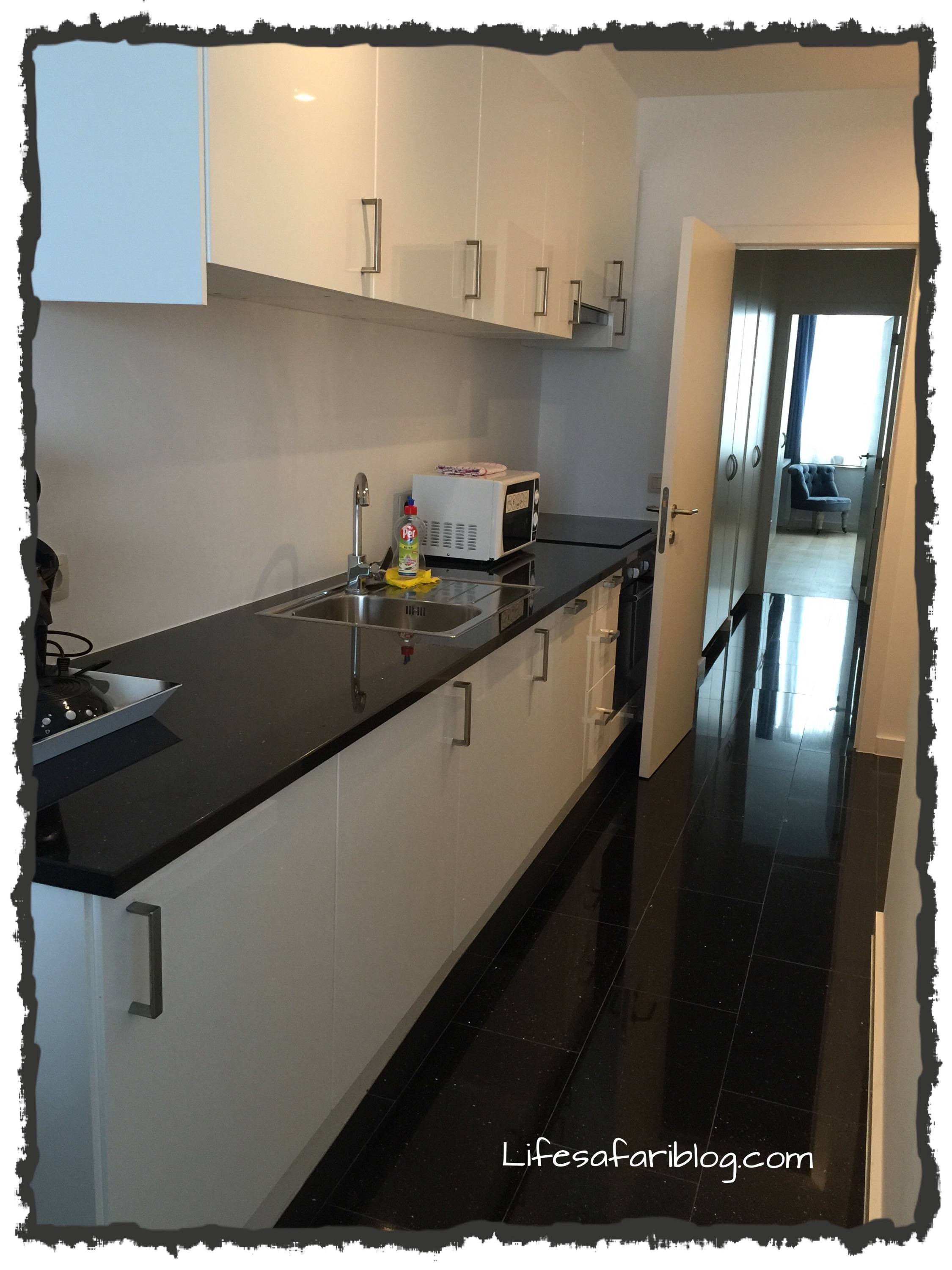 “It is just down the street,” he replied. He escorted me to a white six-story building accented by black balconies. The outside was adorable. He showed me how to use the keyless entry and told me what floor I would be on. “I will leave you here. Come back if there is anything else.” He hurried back down the street to the hotel returning to his unattended desk.